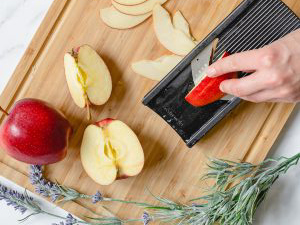 Die speziell geformte kräftige Messerklinge mit Wellenschliff wird auch mit dem hartnäckigsten Pizzaboden fertig.
